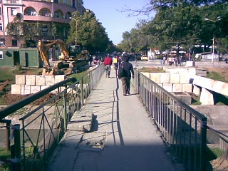 Almost everyday I walk on this little bridge on the way to and from work. This small but vital link for pedestrians like myself, connects two sides of the Lana River and it is known by many as the “little Bloku bridge†(ura e vogel e Bllokut), since it connects the Block area of Tirana with the Youth Park (Rinia Park or Taivan Center).