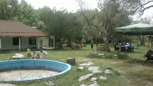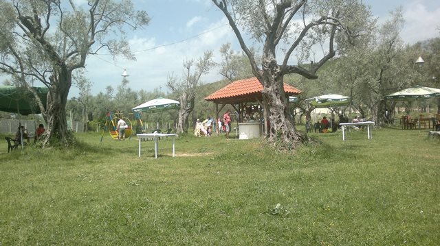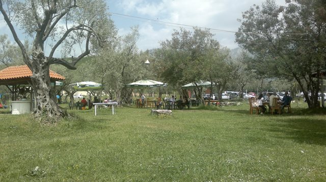 I cannot deny the fact that I enjoyed very much the ability to sit outside among the olive trees and general greenery. There were children playing everywhere and families eating on green plastic tables and chairs (much like a picnic).
